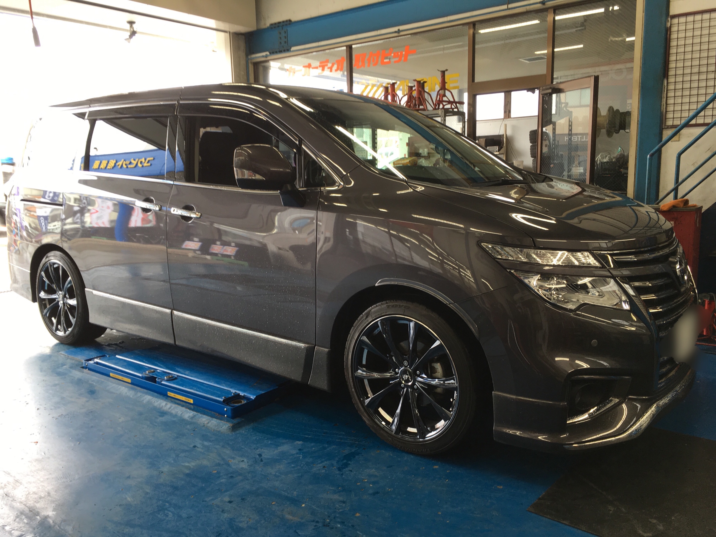 エルグランド E52 に車高調とインチのホイール タイヤ交換しました 4輪アライメントも 姫路市 グーネットピット